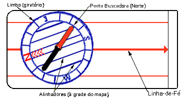 para alinhar a bússola (ou a cápsula) às linhas norte-sul da grade de